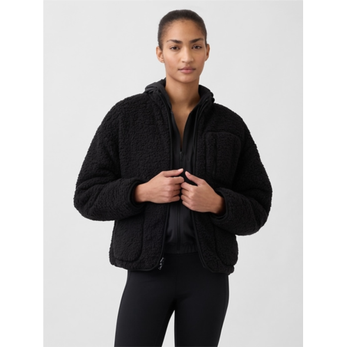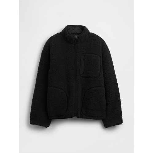 - Soft sherpa and water-repellent quilted knit reversible jacket. In a relaxed fit.