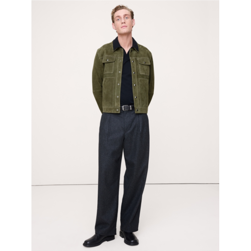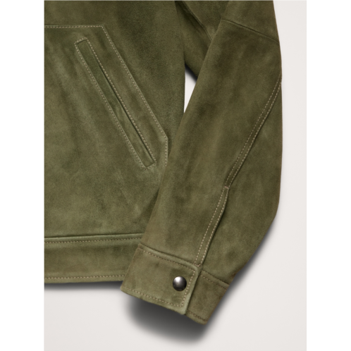 - A luxurious take on a utilitarian staple, this suede jacket borrows its silhouette from classic trucker jean jackets. We kept the pocketing, snap buttons, and top-stitch detailing of the original, and rendered it in premium suede, made in one of the world’s most renowned ateliers. Plus, since it's suede, it will only get better with time, developing a rich and unique patina.