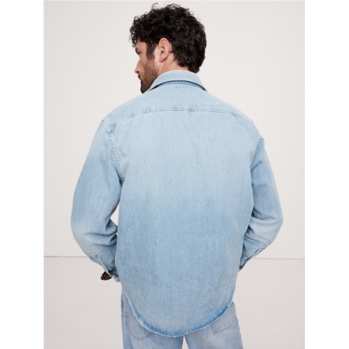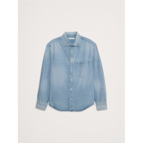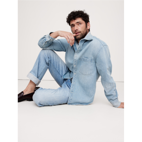 - The vibe is vintage. We cut this relaxed shirt from a soft denim fabric in a weight that's just slightly heavier than chambray so it's easy to layer through the seasons. Plus, we added a wash to mimic the look and feel of true vintage.