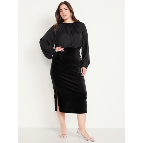 OldNavy High-Waisted Ruched Velvet Midi Skirt
