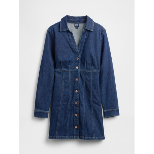 - Authentic low-stretch denim button-front mini dress.
