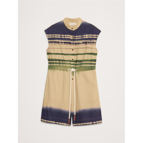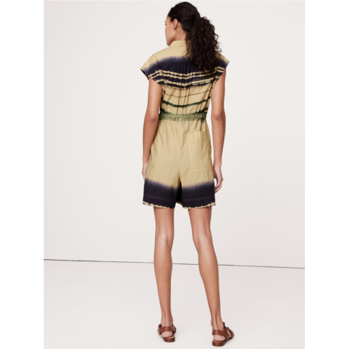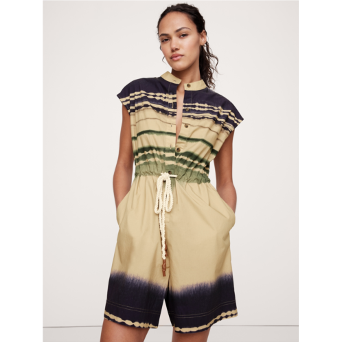 - We're loving cotton poplin right now (and always). This romper nods at the season's utility trend with a rope-like drawstring at the waist and banded collar.