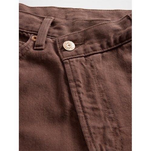 -Look:A classic five-pocket barrel jean in a dark brown wash.