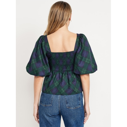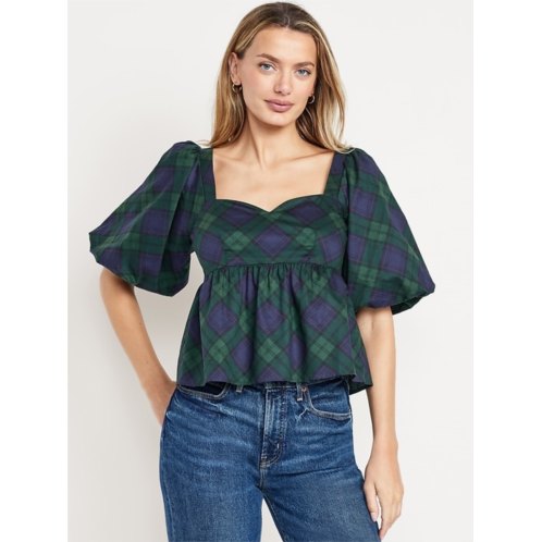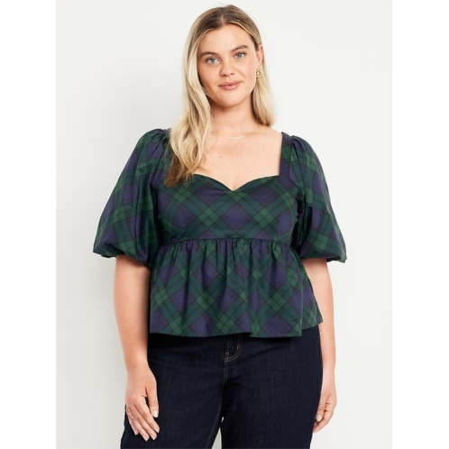 OldNavy Puff-Sleeve Plaid Poplin Peplum Top