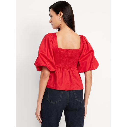 OldNavy Puff-Sleeve Poplin Peplum Top
