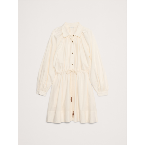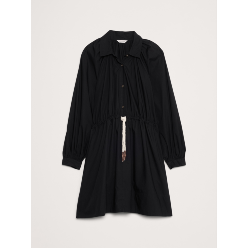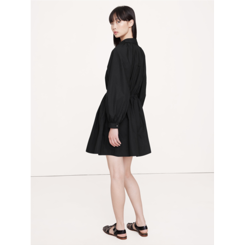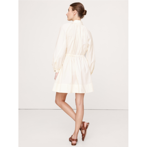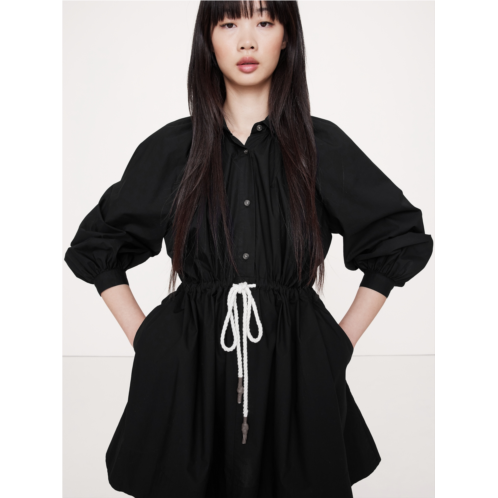 - We're loving cotton poplin right now (and always). This mini dress nods at the season's volume-sleeve trend, fitted with shirtdress styling and a utilitarian drawstring at the waist.