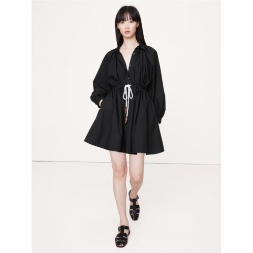 - We're loving cotton poplin right now (and always). This mini dress nods at the season's volume-sleeve trend, fitted with shirtdress styling and a utilitarian drawstring at the waist.