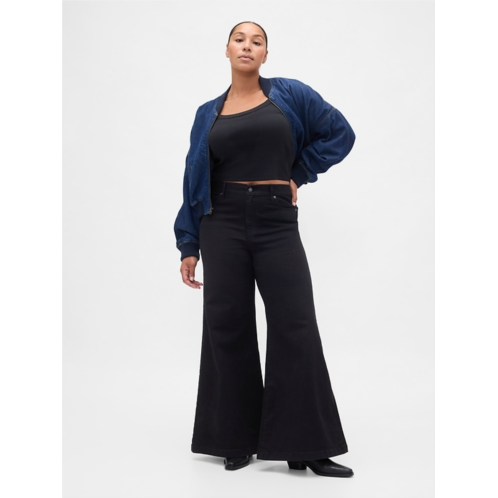 - Semi-fitted through the hip & thigh. Relaxed, extra-wide flared leg.