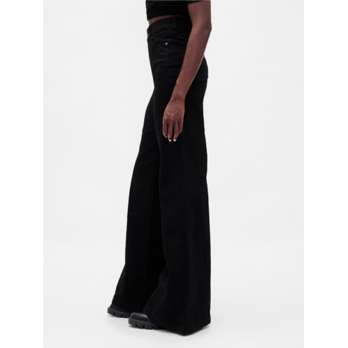 -Fit:Fits close at the waist & hip with slight ease through the thigh & a relaxed, extra-wide flared leg.