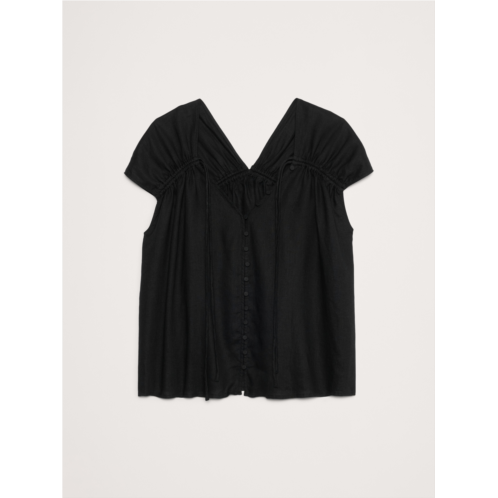 Bananarepublic Oversized Linen Button-Front Drawstring Top