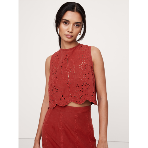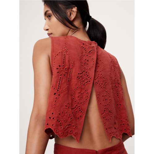 - Prepare for compliments. We cut this open-back top in an heirloom-level eyelet fabric that blends silky TENCEL and breathable linen. Make it a set with the matching skirt.