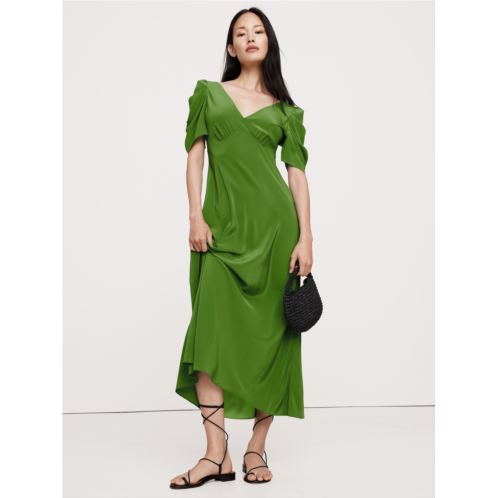 - A good excuse to RSVP yes. This silk dress is based on a vintage slip dress style from the 1990s, updated with draped, puffed sleeves and our signature silk crepe de chine, a fabric we love for its luxurious feel and matte look. Plus, did we mention it's also machine washable?