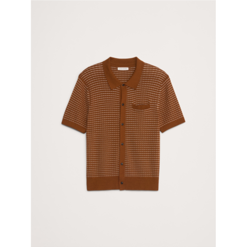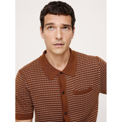 - Resort shirt meets sweater polo. We combined the best of both using a variety of striped stitches in our 100% certified-organic yarn (so it's ultra soft).
