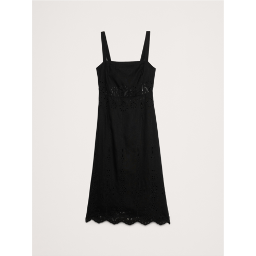 - An ode to traditional cut-work lace techniques, we added extensive eyelet embroidery to finish this easy midi dressin 100% certified-European linen.