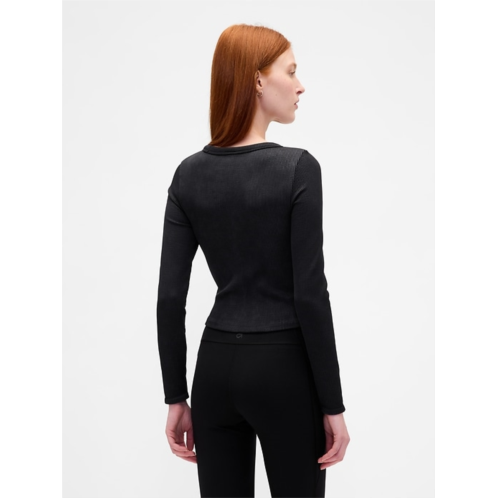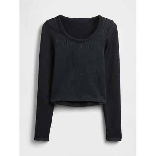 - Supersoft, seamless ribbed stretch knit cropped active top.