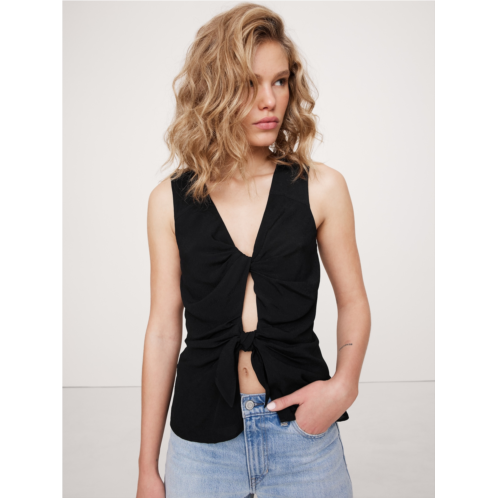 - V-neck with twisted front and tie front closure.