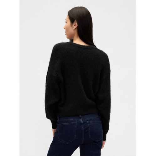 - Soft, fuzzy faux mohair sweater. In a slightly cropped, oversized fit.