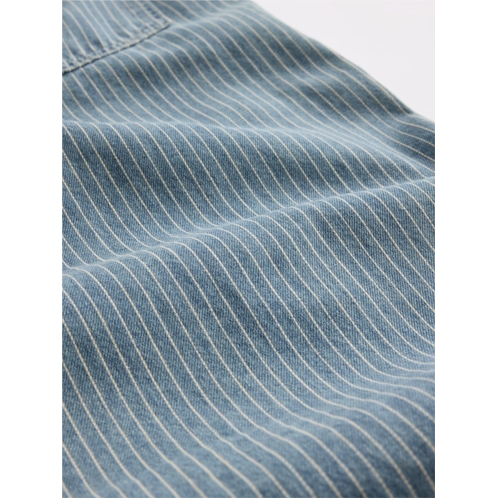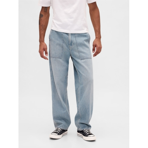 -Look:A baggy jean in light blue indigo with allover stripes.