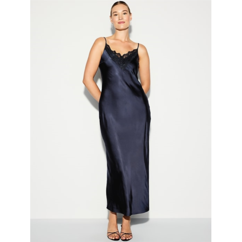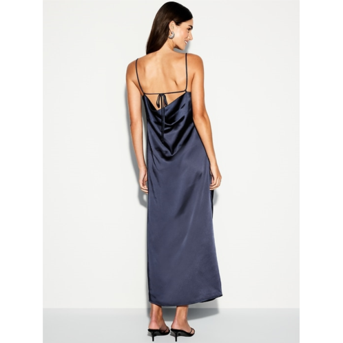- body-skimming satin is cut on the bias for a perfect fit