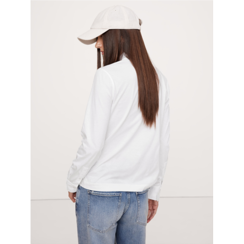 - This timelessly tailored long-sleeve shirt is cut from our silky cotton jerseya fabric we love for its beautiful drape and dressed-up look.