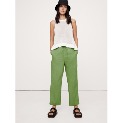 - An easy pant, ready for warm weather. This straight-leg pant is crafted from our signature cotton poplin with an elastic waistband and drawstring closure for a custom fit.