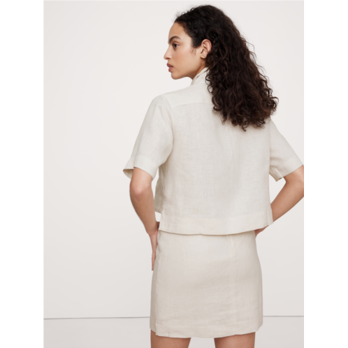 - A little linen moment. This boxy top is cut from certified European flax linen with premium details: a covered button placket, chest pockets, and a high-low hem. Pair with the matching mini skirt or style with high-rise jeans.
