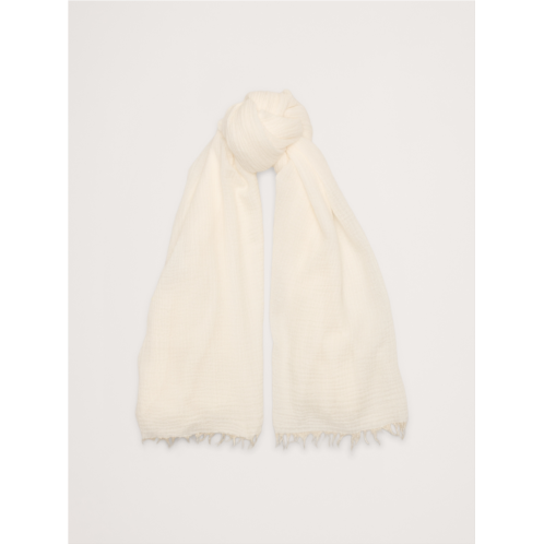 - This gauzy scarf is made from an Italian fabric that blends silky lyocell with warm Merino wool.