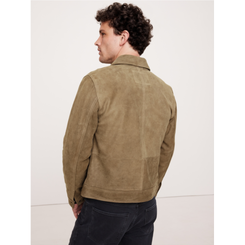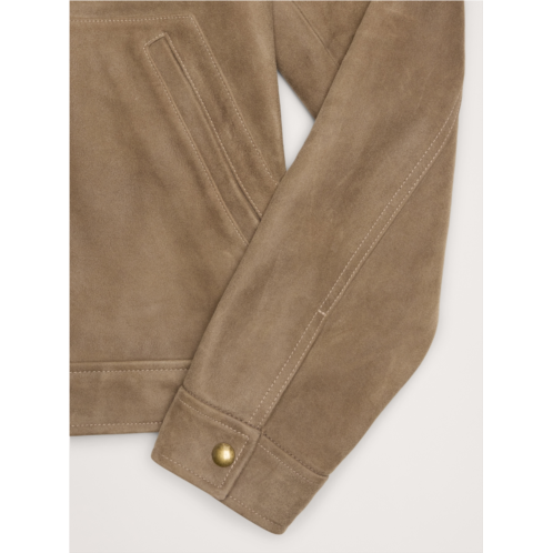 - A luxurious twist on a utilitarian staple, this leather jacket borrows its silhouette from classic trucker jean jackets. We kept the pocketing, snap buttons, and top-stitch detailing of the original, and rendered it in premium nubuck leather, made in one of the world's most renowned ateliers. Plus, since it's nubuck, it will only get better with time, developing a rich and unique patina.