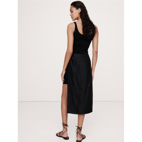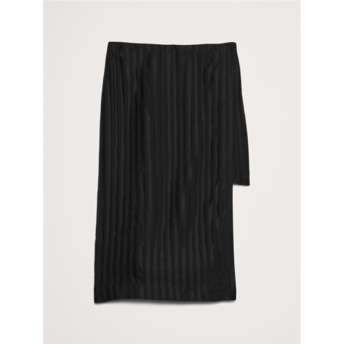- Look closely: the subtle stripes of this asymmetric skirt are woven in opposite directions using an jacquard technique. The effect is a subtly shimmering effect that's anything but basic black.