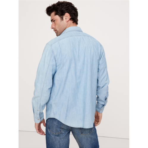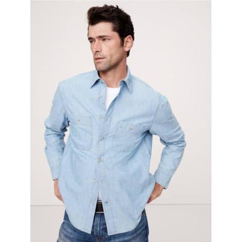 - This chambray shirt is made from beautifully smooth and soft cotton that is specially washed for an already-loved feel.