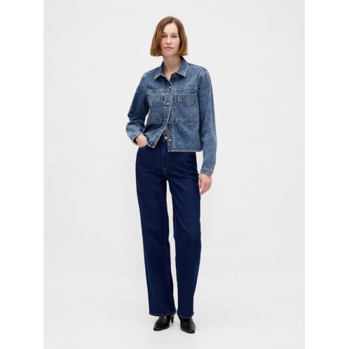 - Authentic non-stretch denim cropped shirt jacket.