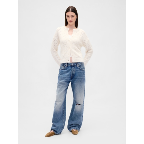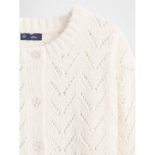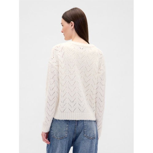 - Soft, fuzzy wool-blend pointelle knit blend cardigan in a slightly cropped length.