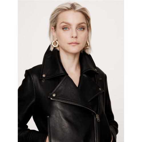 - Our relaxed and slightly cropped take on the moto jacket, we rendered it in premium leather, crafted in one of the world's most renowned ateliers. Since it's leather, it will only get better with time, developing a rich and unique patina.
