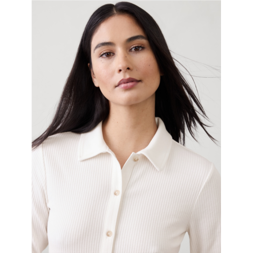 바나나리퍼블릭 Brushed Ribbed Button Top