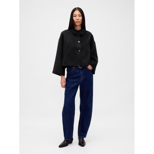 - Soft, double-faced wool-blend oversized swing jacket in a slightly cropped length.