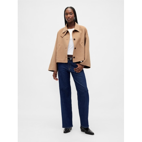 - Soft, double-faced wool-blend oversized swing jacket in a slightly cropped length.