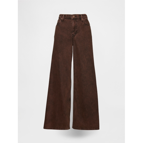 -Look:A five-pocket baggy jean with a dark brown wash.