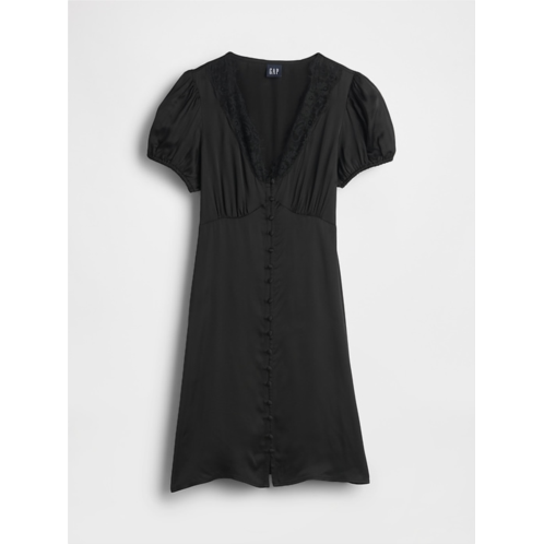 Gap Satin Lace-Trim V-Neck Mini Dress