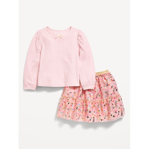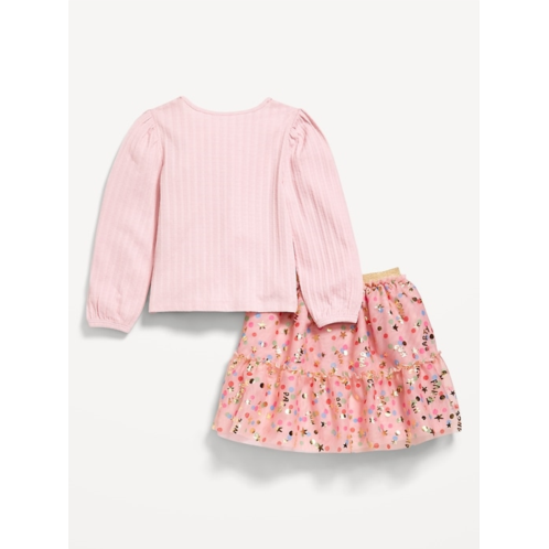 OldNavy Long-Sleeve Pointelle Top and Tutu Skirt Set for Toddler Girls