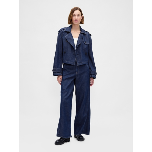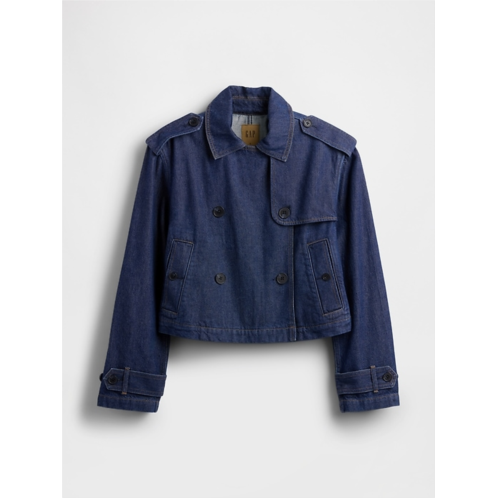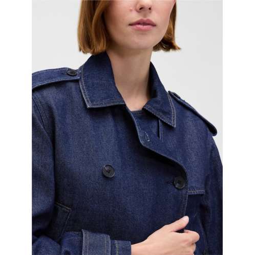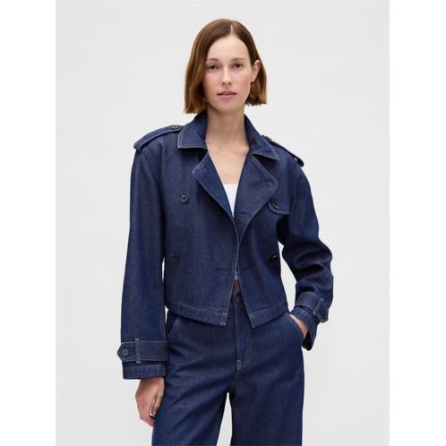 - Supersoft cotton-Tencel blend denim cropped trench jacket.