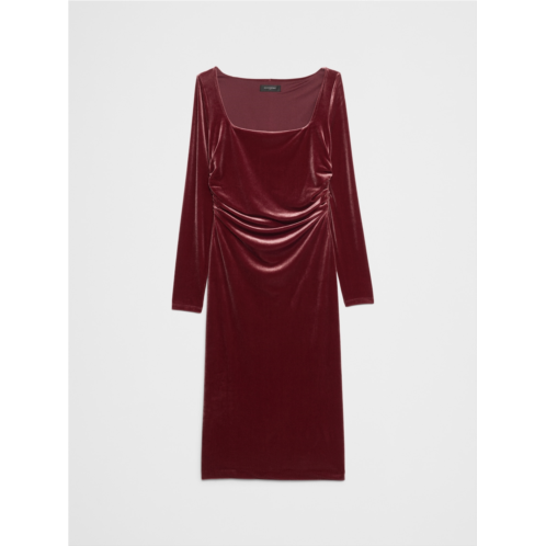 바나나리퍼블릭 Velvet Shirred-Waist Below-Knee Dress