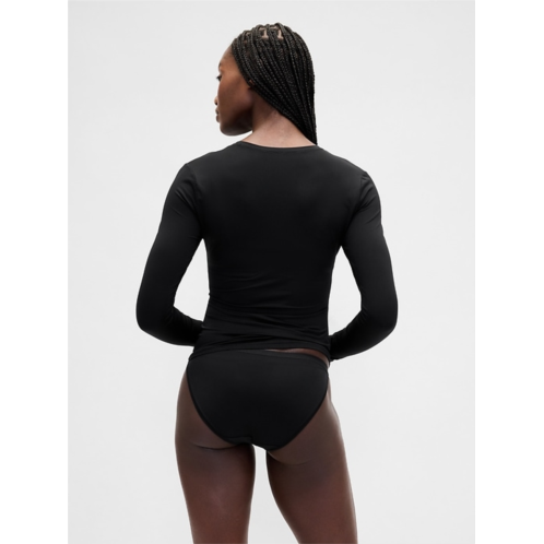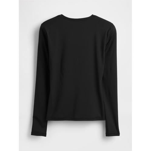 - Soft, ultra-stretchy nylon-blend base layer T-shirt.