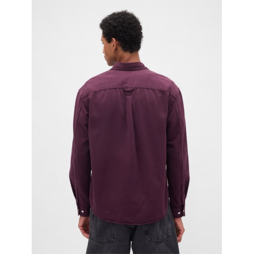 - Supersoft cotton-Tencel blend denim relaxed button-up pocket shirt.