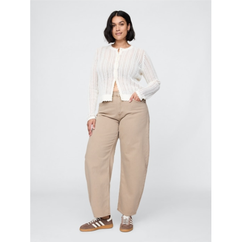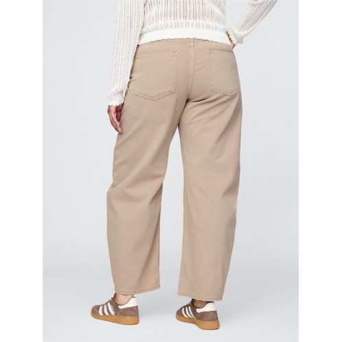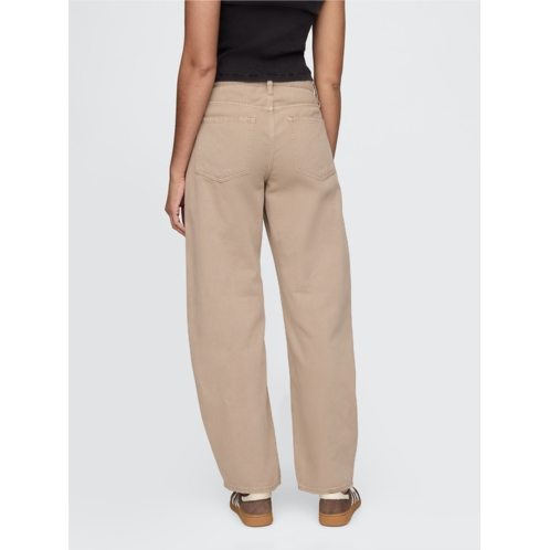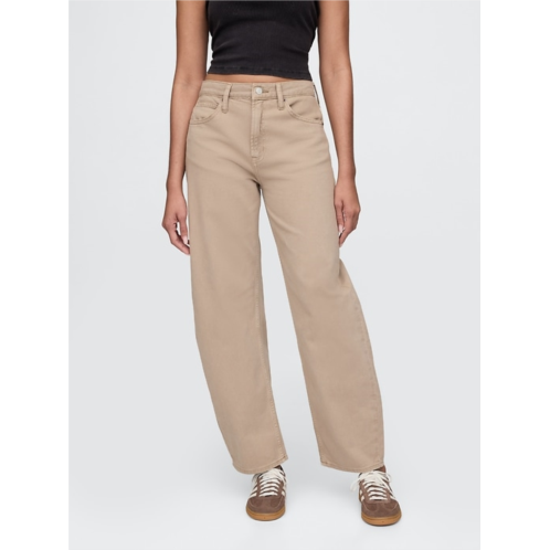 - .Fit:A full-length barrel jean that's fitted at the waist with a relaxed leg and tapered ankle.
