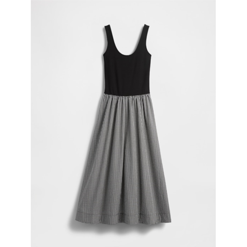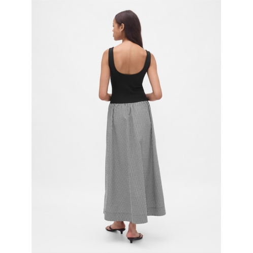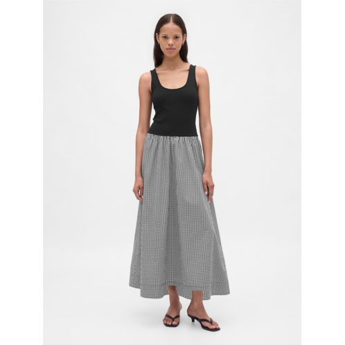- Soft, heavyweight ribbed top with a crisp cotton poplin skirt mixed media maxi dress.