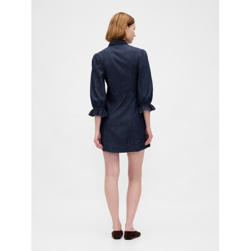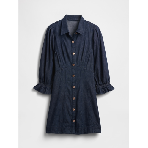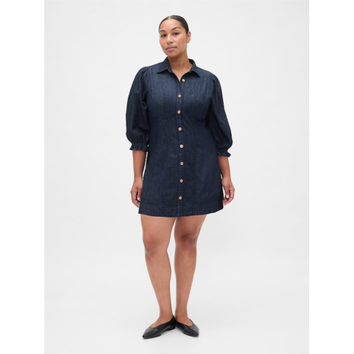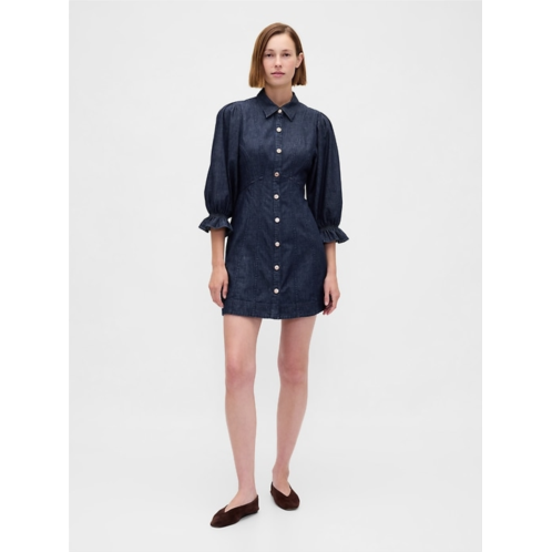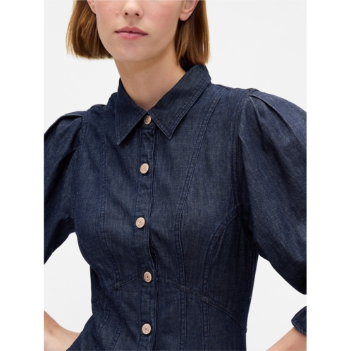 Gap Denim Puff-Sleeve Seamed Mini Dress