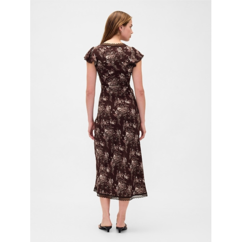 Gap Lace-Trim V-Neck Crepe Maxi Dress