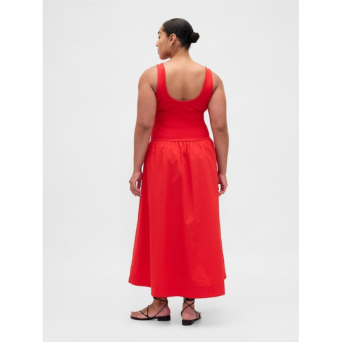 - Soft, heavyweight ribbed top with a crisp cotton poplin skirt mixed media maxi dress.