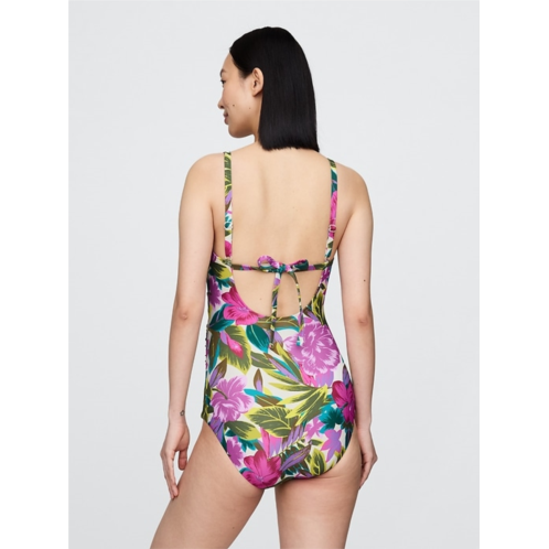 - This one-piece is made with 83% recycled polyester. Less waste in the world. More great swimsuits for you.