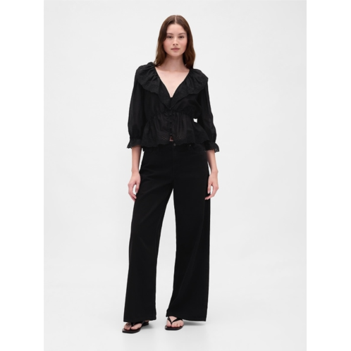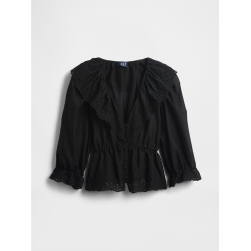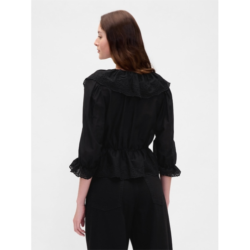- Elbow puff sleeves with elasticized ruffle cuffs.